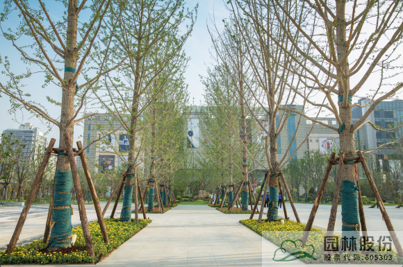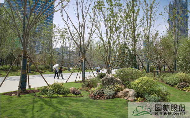 2、特选、高品质苗木种植:建有银杏广场、重阳木树阵、樱花大道等,彰显规整大气、繁花绽放的园林之美;