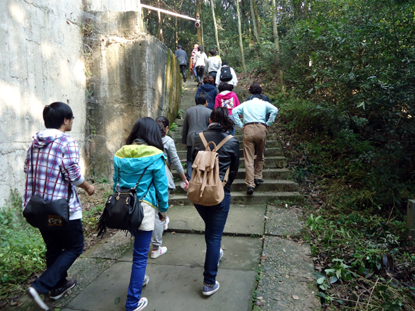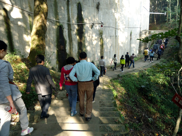 一路上,台阶时高时低,地势时陡时缓,很快,就有人喊着走不动了,而有人则依然健步如飞……大队人马很快分散成了一条长长的队伍,在蜿蜒的山路中向着高处奋勇攀登!