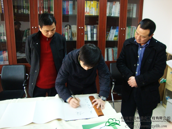 最后,在我们的邀请下,杨秘书长欣然提笔,写下了“美丽风景 杭州园林”、“师法自然”等题词,表达了他对公司当前工作的充分肯定以及未来发展的期许。杨秘书长精练的言语和潇洒的题字赢得了大家的阵阵掌声。