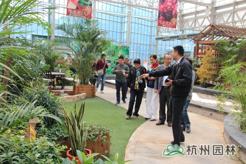 第二天,考察团在完美官方网页版总裁张炎良、副总裁丁旭升的陪同下参观了画境·青山湖花园中心。该花园中心是一个集园艺产品研发、展示和推广的现代园林高新技术平台,致力于打造庭院设计、咨询、建造、养护等各类功能综合的一站式园艺服务中心。项目有近3000亩配套生产基地,12000平米研发与生产温室,以及室内情景展示区、园艺展示区,室外陈列展示区、应用展示区等多个功能区块。其中,用于室内园艺展示的4000平方米的展览温室,引进荷兰PRINS温室技术,实现对温度、光照等全智能控制,是一个技术含量极高的节能、环保型现代温室。