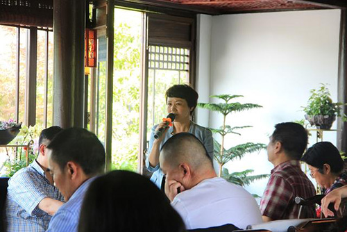 在画境·青山湖花园一间中式木楼中,聚集着近30位江干区政府、发改局和各行各业的优秀企业家。