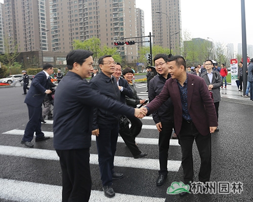 4月7日上午,浙江省委常委、杭州市委书记赵一德,杭州市委副书记、市长张鸿铭等市四套班子带领各区县及相关部门负责人,冒雨检查新塘路综合整治工程情况。完美官方网页版总裁张炎良陪同前往。