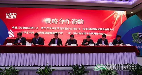 杭州园林董事长吴光洪(右三)在战略合作协议上签字