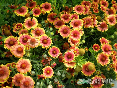 天人菊,原产北美,中国中、南部广为栽培。耐干旱炎热,不耐寒,喜阳光,也耐半阴,宜排水良好的疏松土壤。它耐风、抗潮、生性强韧,具耐旱特性。每月均需施全肥,不适合播种,最好小苗栽植,需2次摘心。