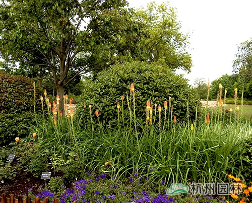 火炬花叶长至二三十厘米即开始下垂,但其花序长可达80-100cm,在花境中常用作焦点或背景材料。