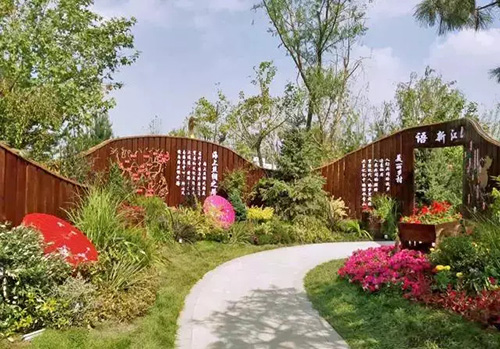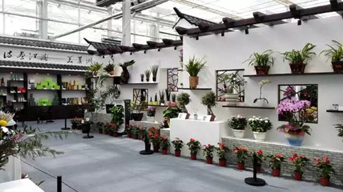浙江展区紧扣花博会“花儿绽放新丝路”的主题,提取江南水乡的典型建筑元素之一的“桥”,并融合杭州西湖十景之一的“三潭映月”进行展区外形设计,不仅体现了浙江优美的自然和独特的人文环境,也象征着友谊之桥、沟通之桥、共赢之桥。