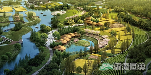 乐活园艺主题区:以家庭园艺花园为主,是公园的圩田湿地体验中心,水道如巷,河汊如网的圩田农艺景观,呈现出田园牧歌般的意境。包含飘带走廊、水荡花田等景点。