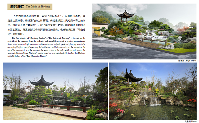通过一幅幅效果图与实景图的对比,不难发现,实景图与设计图并没有太大区别,实景图最大限度表现了设计思想和精髓,实现了设计图纸的完美落地。细心、用心、创新,深化设计团队助力浙江园展开了一幅新时代的“富春山居图”,在2019北京世园会上绽放出夺目光彩。这,就是浙江园的深化设计团队;这,就是杭园股份的设计力量。