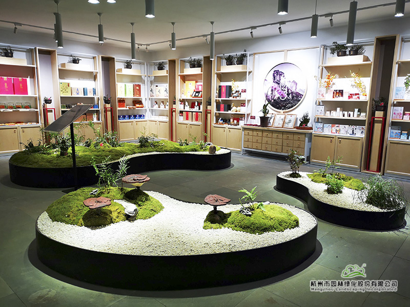 深化设计充分利用原始现场3米高差形成错层主体建筑,从入口进入庭院观建筑是一层,背面观是两层,负一层形成半地下室空间,形成了前庭后院的浙江美丽农家院落。一层展厅由茶艺展示区、会客区、书房等组成,品茶、书法、闲谈、小憩,展示惬意富美的浙江生活;负一层展厅则以产品陈列为主,主要展示浙江省前沿的室内园艺品种,宣传浙江最新的栽培技术与深加工产品等,让园艺、生活有机融合。