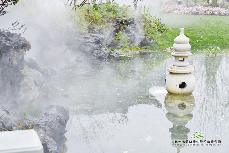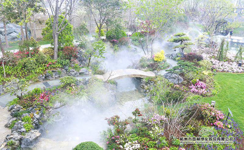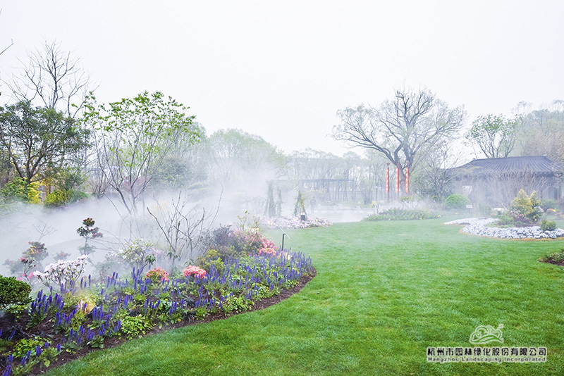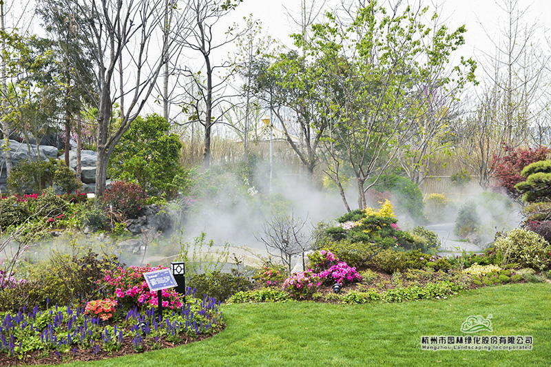 行走在浙江园,正在自动释放的“雾森”,使植物变得更加清新润泽,雾气氤氲间,让人仿佛置身烟雨江南,充满梦幻感。