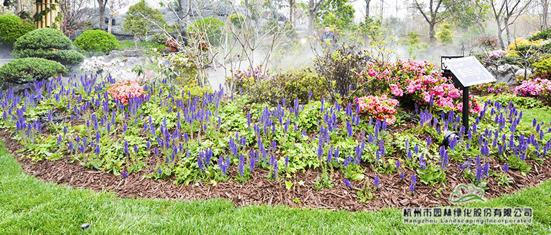 除了土壤改良,裸露地面还铺了一层棕色覆盖物,这是一种用树皮深加工成的新型产品,里面加入了有利于植物生长的营养成分。不但具有美观的作用,而且可以有效防止水分蒸发和水土流失,冬天则具有保温作用,防止植物根系冻伤。