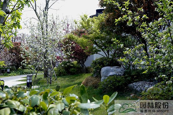 从一号岛“海棠荟萃”的入口进去,迎面一幅巨大的照壁,图案是整个南海未来城的缩影,照壁采用苏州园林传统的砖雕手法,丰富的元素,细腻的雕功,即将腾飞的南海未来城正打开一幅欣欣向荣的风情画卷。照壁前,造型罗汉松、竹子与水洗石等搭配的小景,精致中蕴含大气,象征着中华海棠园敞开怀抱欢迎四面八方的来客。