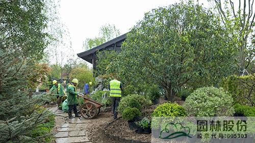 工地现场,施工人员正忙着进行放线、地形微调、植物种植、养护管理等工作,力争早日将美景呈现。截止目前,浙江园的山石水景、硬质铺装、主体建筑、大规格乔灌木种植等已基本完成,接下来主要进行下层空间的花境布置等工作。