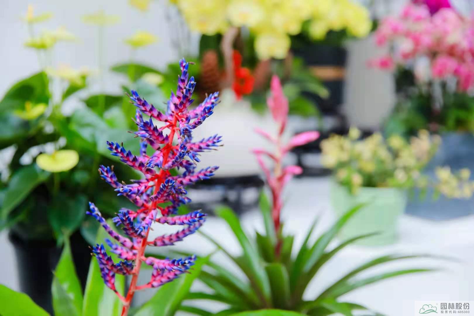 浙江馆内展示了大量浙江园林园艺的新品种,姹紫嫣红,繁花似锦,展示出浙江大花园建设的绚丽多姿。