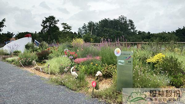 《泽•颂》的设计将花境与湿地相结合,以花之灵、水之灵、鸟之灵为主线,以木本花境、观赏草混搭宿根植物、枯木苔藓等植物景观模式,模拟自然湿地的灌丛、草甸、藓类等不同类别湿地景观,营造繁花似锦的美丽场景,营造出“归棹茭芦苇岸,白鹭锦鳞为伴,闲卧水云间,但见碧波清浅”的幽雅湿地景观。