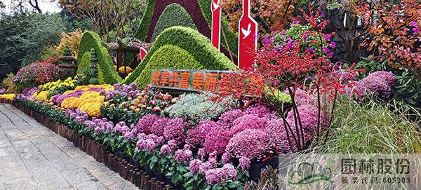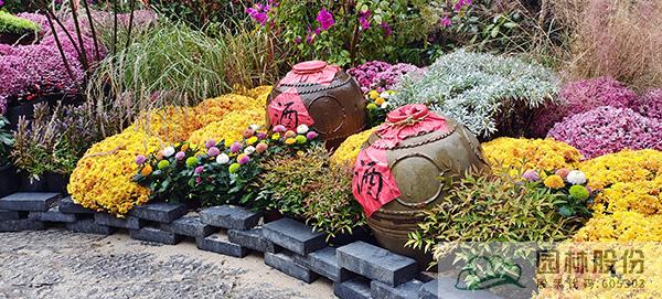 本次花境景观中的主体虽是菊花,如球菊、蟹爪菊、乒乓菊、芙蓉菊等,但点缀其中的植物优良品种,使得整体花境更具独特魅力。
