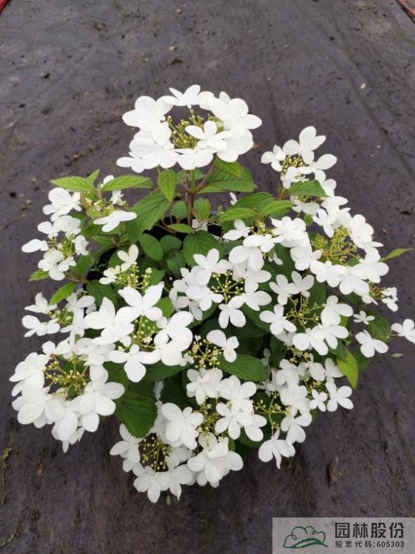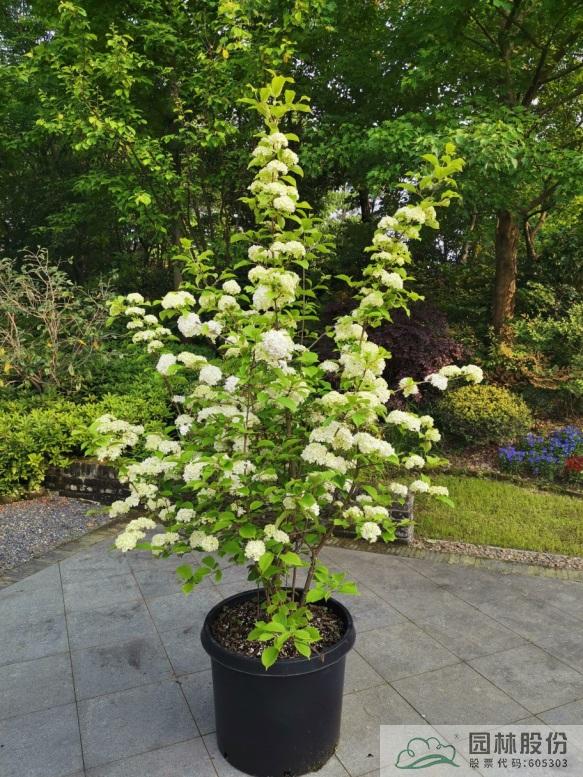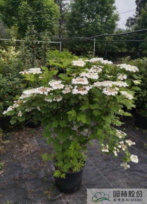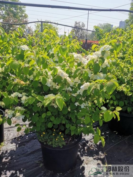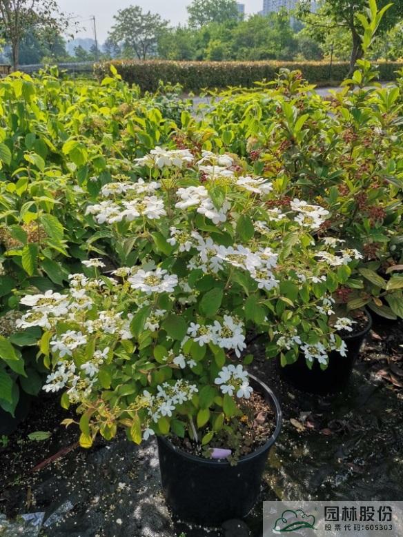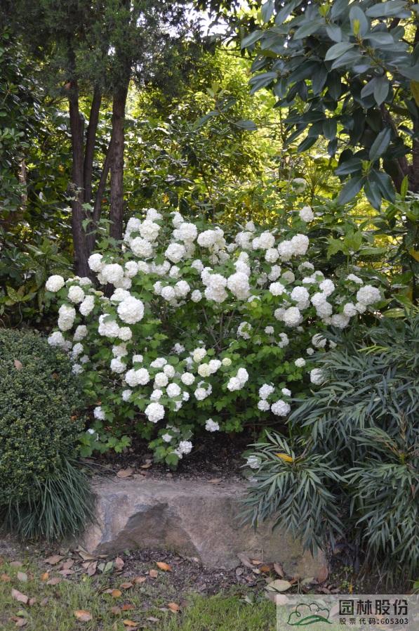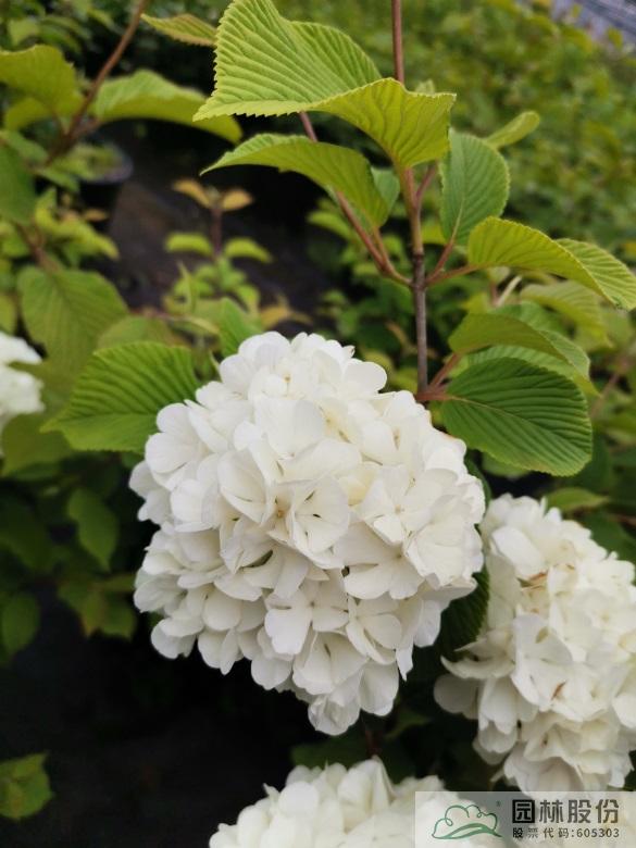 忍冬科荚蒾属,落叶灌木,树姿舒展。花序半球形,全为不孕花,开花时满树白花犹如积雪压枝,高洁素雅,花谢后则绿叶如碧,无论花叶均具有较好的景观效果。生长强健,喜欢散射光环境,适合工程应用或庭院观赏。