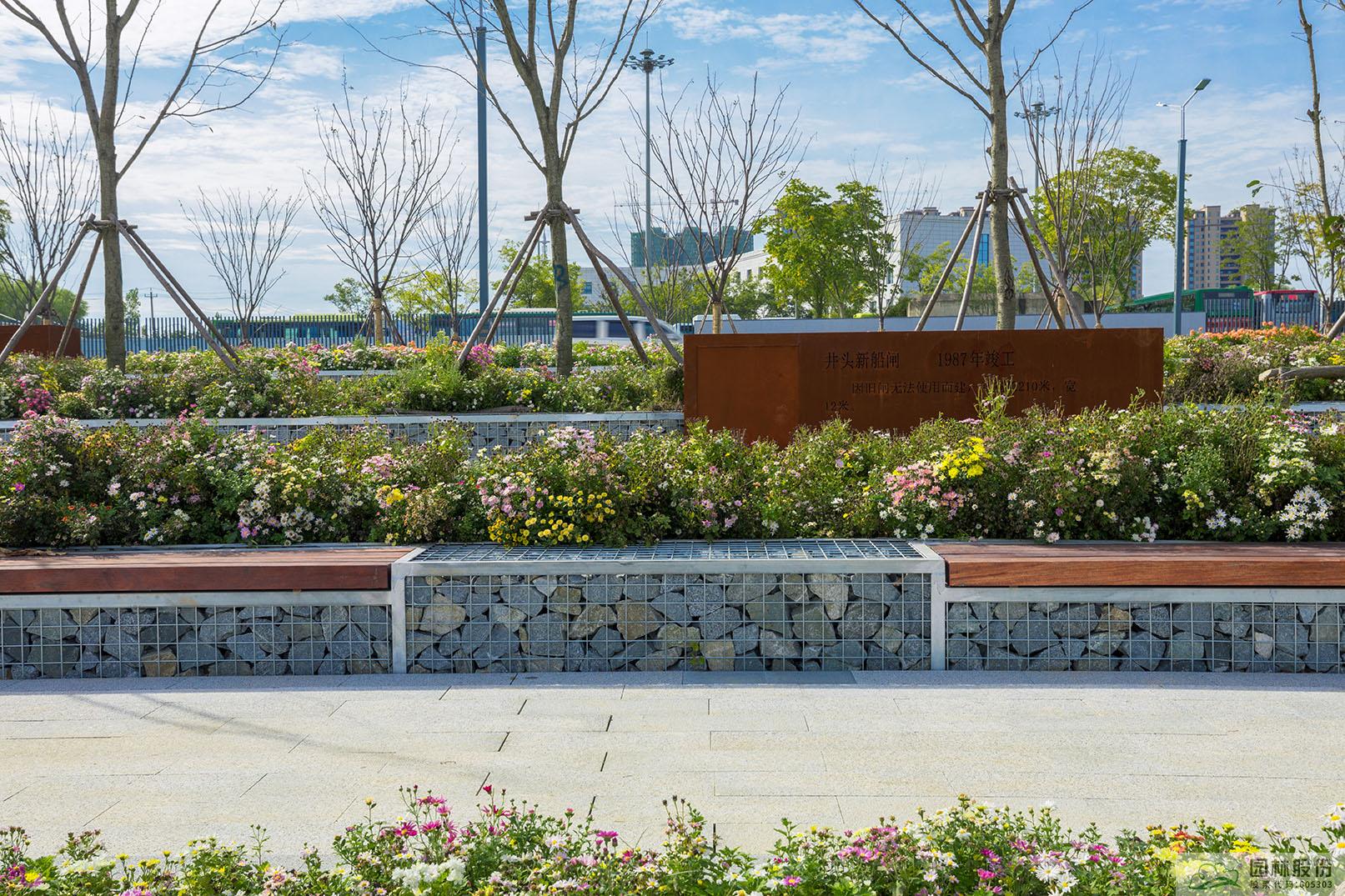 公园建设过程中充分利用运河现状,最大限度保护运河环境,因地制宜挖掘和利用原有的生态、历史、文化等资源,推进运河生态功能系统恢复和生态环境质量改善,体现运河变迁与城市发展的关系,展现运河沿线的文化特色和历史风貌。公园坚持适地适树的原则,充分利用乡土树种,合理搭配各类开花、色叶和常绿树种,保证了公园景观三季有花、四季常绿。曾经的“城市伤疤”,如今绿荫满地、花开不断、文化气息浓郁,运河之畔,又添一颗绿色生态明珠,一处生态文化旅游新地标。江苏省宿迁市运河湾公园项目成功入选江苏“运河百景”标志性运河文旅产品榜单。