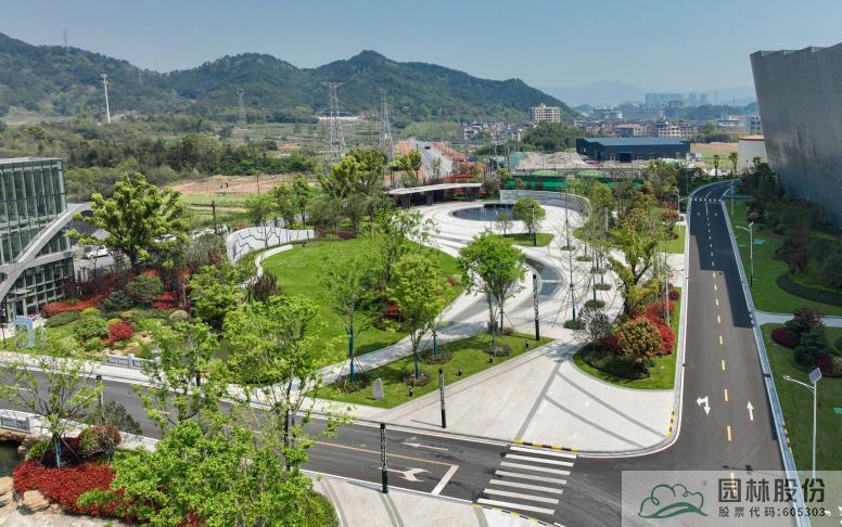 义乌市垃圾焚烧发电厂提升改造项目景观园林绿化工程(一标段)项目位于义乌市赤岸镇华川深能厂区内,工程内容包括道路铺装、知行园、透景曲桥、观景平台、能量镜池、涌动广场、休闲廊架、假山塑石、绿化种植等。