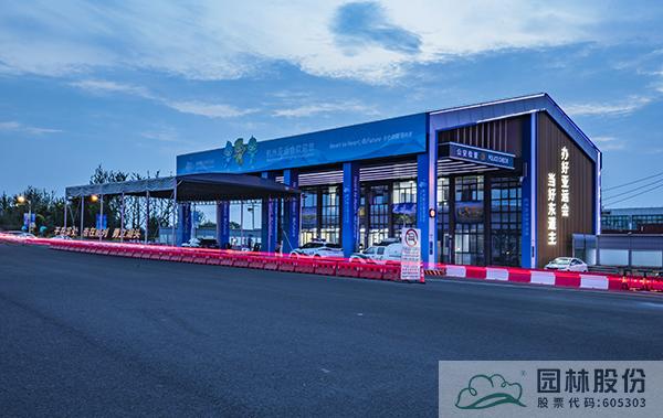 在南侧送客区打造特色景观农业区,通过地形处理和土壤改良,采用堆坡种植,以背景、前景和蔬菜花镜三景融合的农业种植造绿方式,创造性地将入城口和景观农业造景融合,在2.3万平方米的区域里,描绘出春天花开蝶舞纷飞、秋日丰收遍地金黄的田园风光大美画卷。