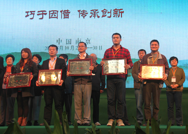 30日下午闭幕式的一个重要环节是为2011年度中国风景园林学会优秀园林工程奖获奖单位颁奖。由杭州市园林绿化工程有限公司承建的“昆明市市级党政机关办公用房搬迁建设项目区内景观绿化工程(第三标段)”和“吴江市震泽镇宝塔街西入口沿河、沿街北侧、后花园仿古建筑工程”分别荣获“中国风景园林学会优秀园林绿化工程奖金奖”和“中国风景园林学会优秀园林古建工程奖银奖”。高总代表公司上台领取了奖牌。